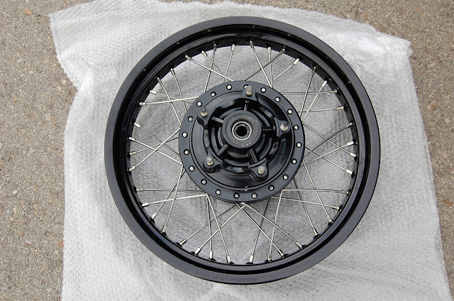 Ya estamos a la espera del montaje de su nueva llanta trasera y neumáticos ¨old school¨.